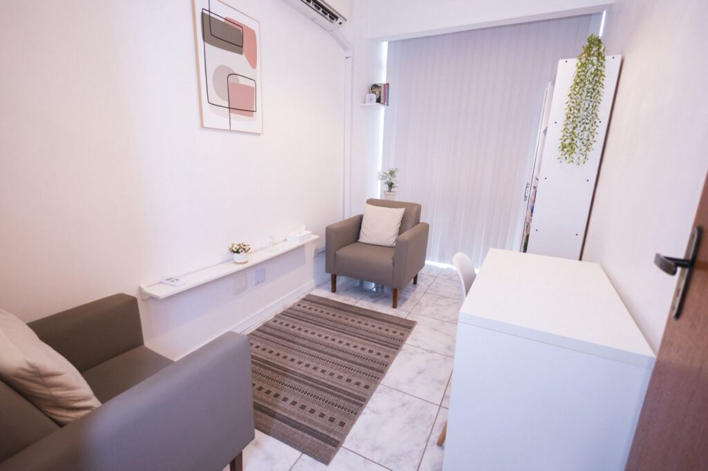 Mais do que uma sala, criei um refúgio. Para as crianças, um espaço lúdico completo onde o brincar é a principal linguagem. Para os adultos, uma sala de espera aconchegante e um ambiente sigiloso, perfeito para desconectar do mundo lá fora e olhar para dentro.